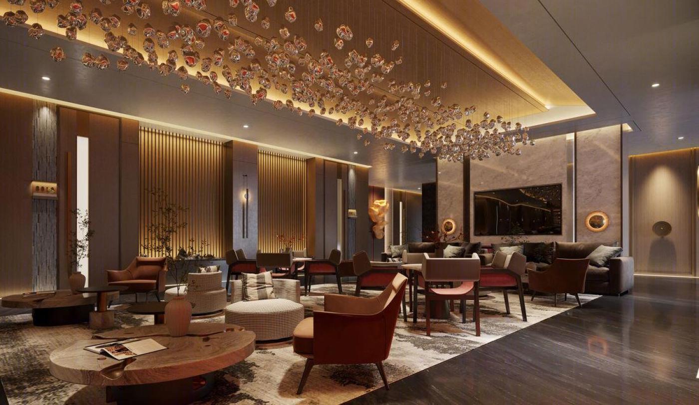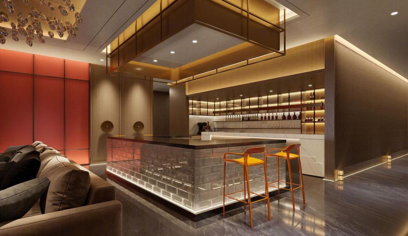 会所的墙壁采用木质材料打造,木质的纹理和质感为空间增添了一份自然与温暖的气息,同时也展现了环保与健康的理念。地面则通铺大理石,大理石的光泽和质感使整个空间显得更加豪华和典雅。
