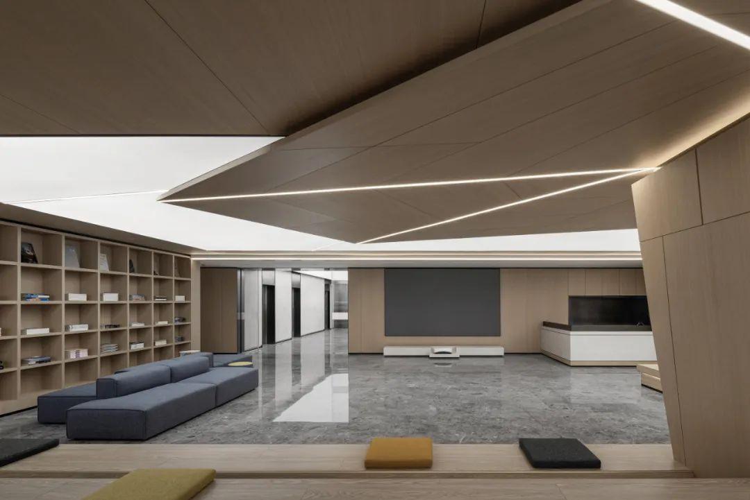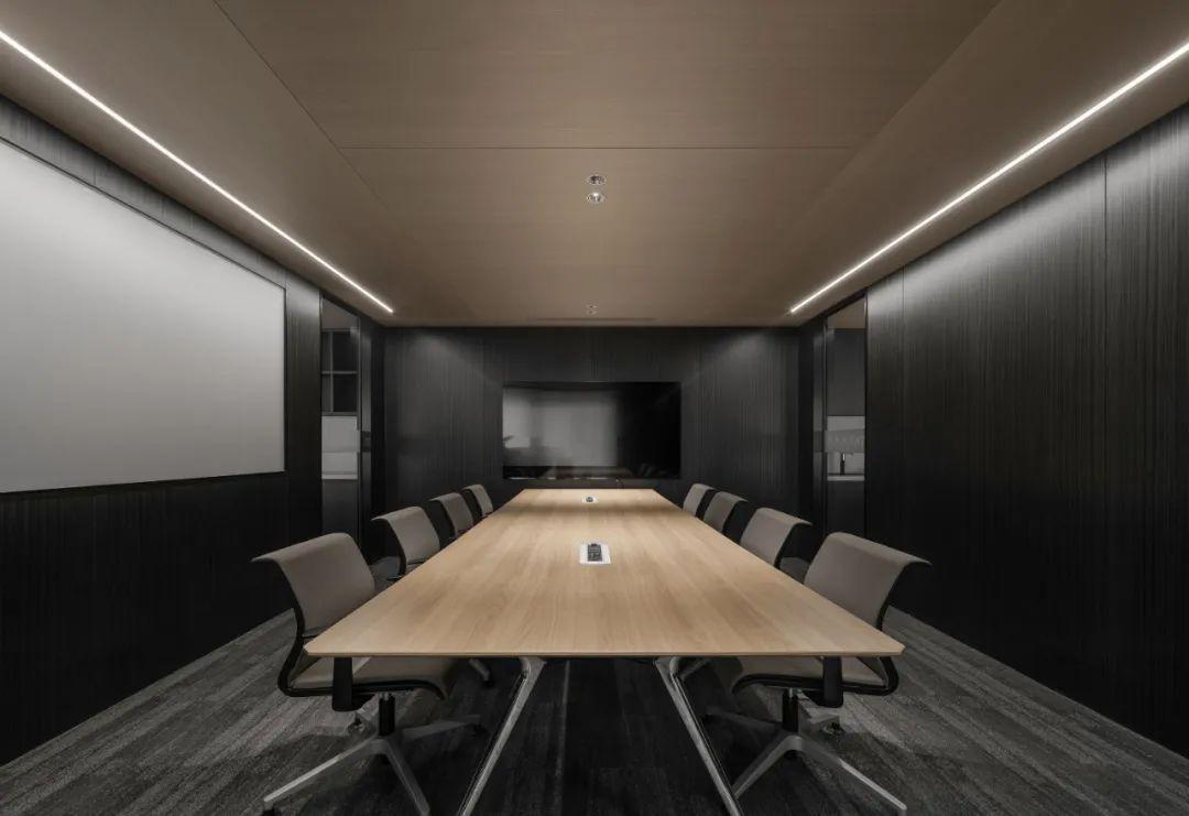 会议室设计简洁而实用,配备了先进的视听设备和可移动的白板,方便团队进行头脑风暴和远程会议。墙面采用吸音材料,确保会议的私密性和声音的清晰度。