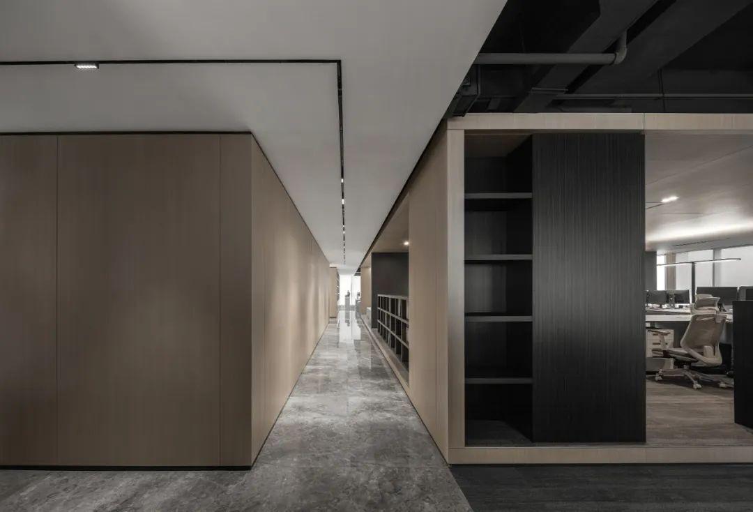 走廊宽敞,地面铺设防滑地毯,墙面以简约的线条装饰,营造出流畅的空间感。走廊两侧的墙壁上悬挂着公司的荣誉证书和艺术作品,既展示了企业文化,也为员工提供了灵感和动力。