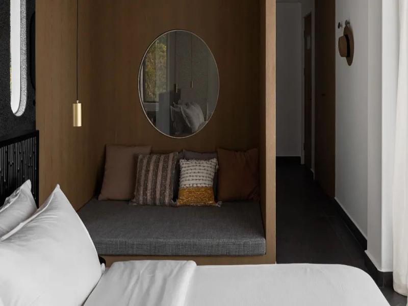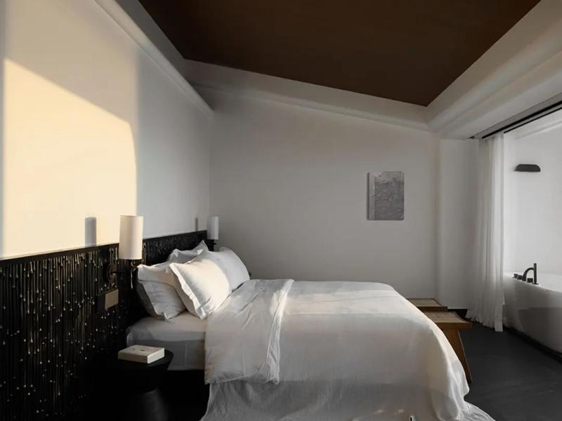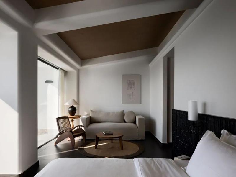 客房设计同样简约而不失温馨。墙面以米白色为主,搭配棕色家具,营造出温馨的睡眠环境。床品选用高质感面料,触感舒适,让人一夜好梦。窗帘采用遮光材质,确保客人拥有良好的休息环境。