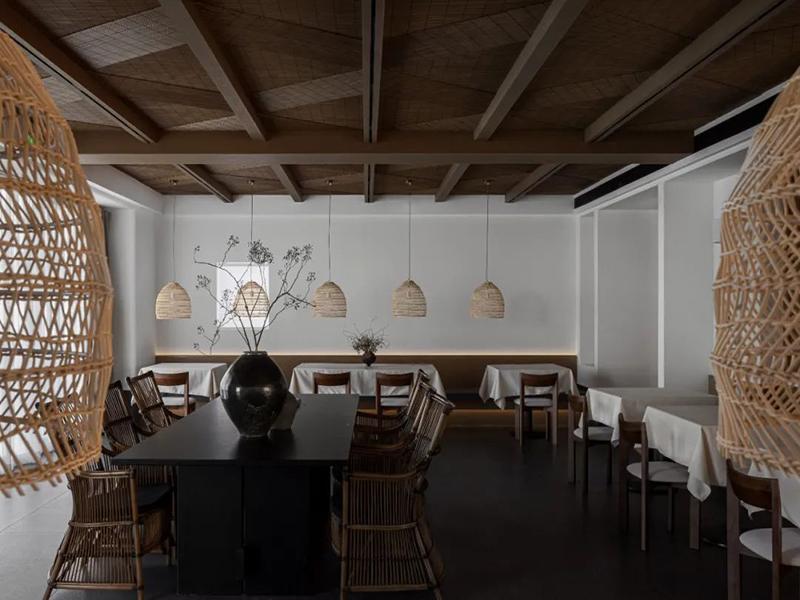 公共区域均采用开放式设计,使空间更加通透。餐厅以白色为主色调,搭配棕色餐桌椅,简约大气。