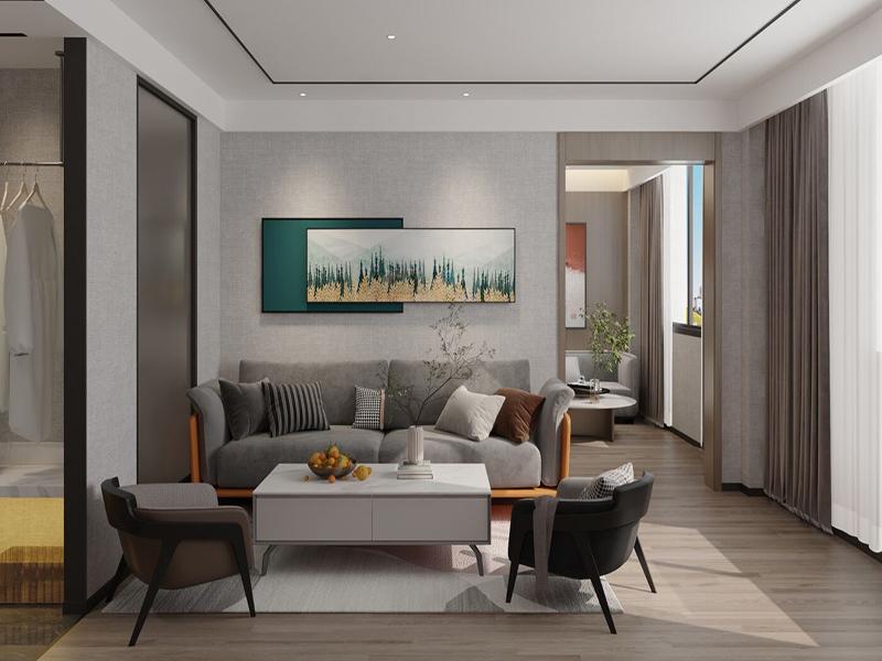 成都商务酒店装修设计,以简约大气为基调,巧妙运用亮灰色调,打造出一个既现代又不失雅致的商务环境