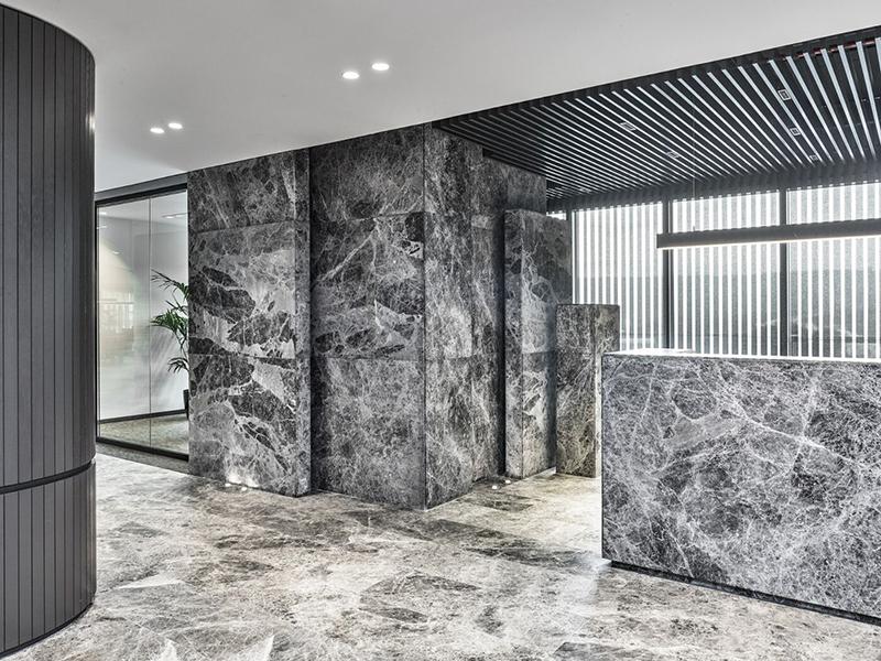 走进改造后的办公室,首先映入眼帘的是宽敞明亮的大厅,墙面以高级灰为主,搭配白色线条装饰,简约而不失格调。黑色的地面与天花板的线条相呼应,为整个空间增添了一抹稳重与深邃。这种灰白黑的三色调设计,既体现了现代简约的风格,又彰显了企业的高端形象。