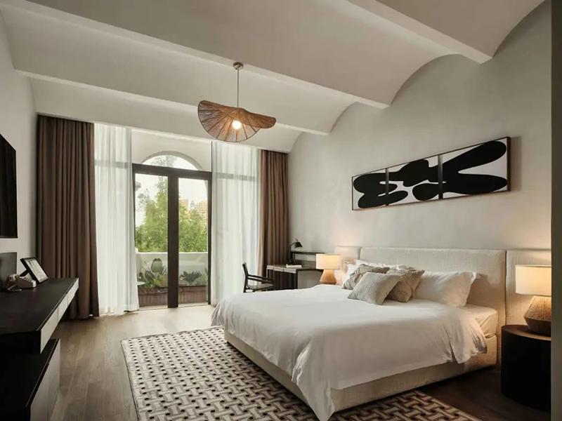 客房的设计同样别具匠心,每一间都精心布置,以欧式复古风格的床具、窗帘和装饰画,打造出温馨而舒适的居住空间。