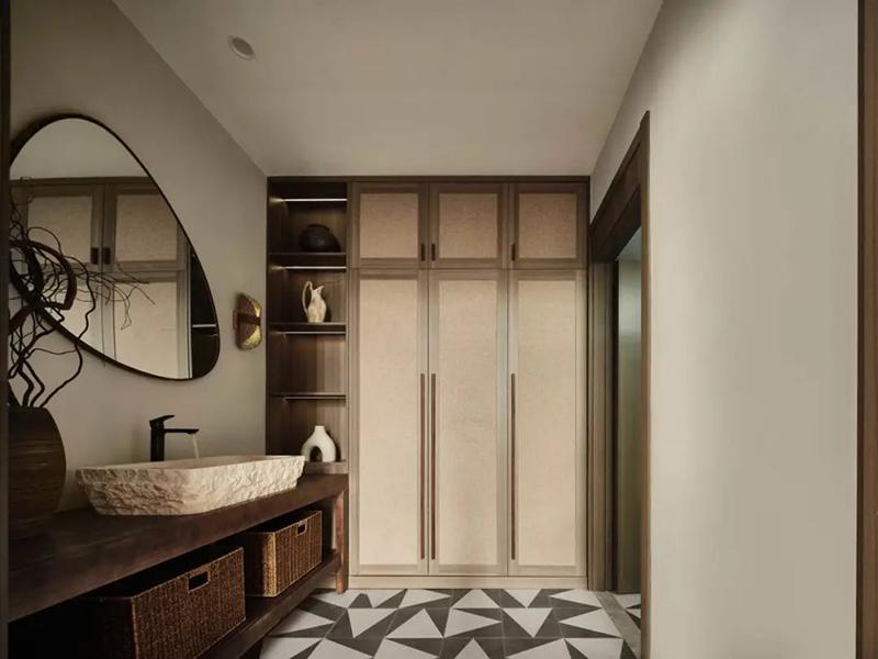 过道的设计也毫不马虎,通过复古的地砖铺设和墙壁装饰,使人们在行走过程中也能感受到欧式复古的魅力。整个民宿装修设计改造,将简约大气与欧式复古风格完美融合,为游客带来一场别样的居住体验。