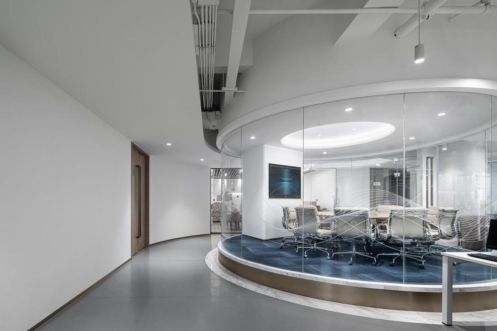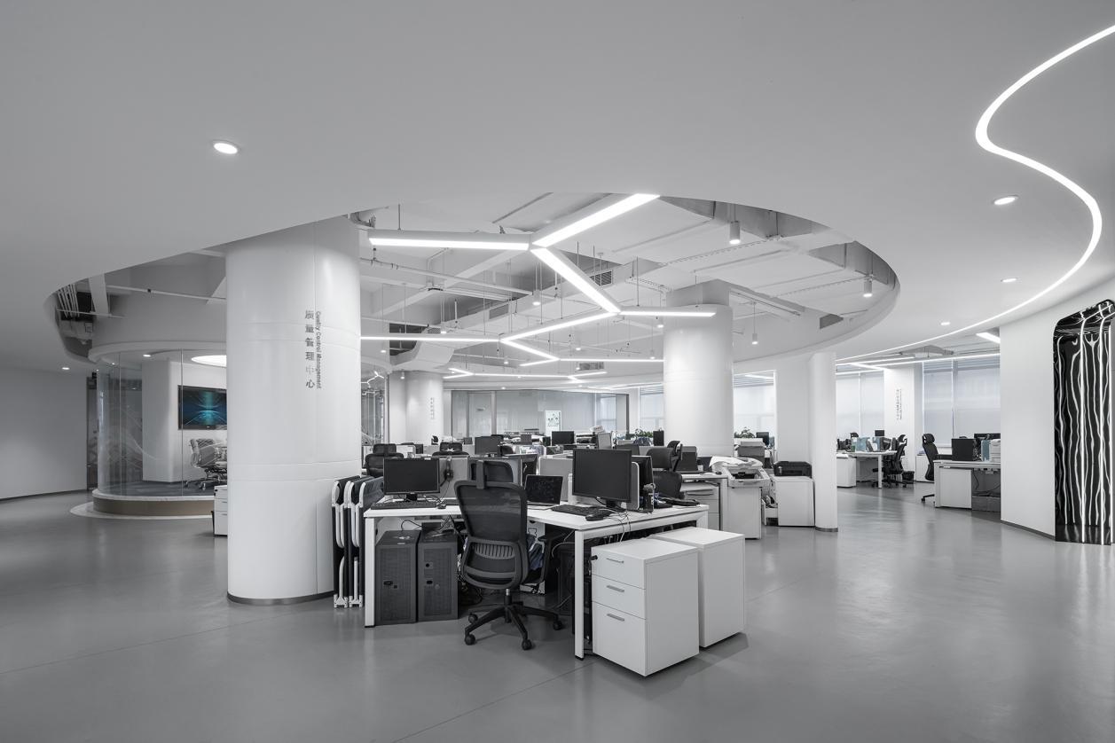 在空间规划方面,四川壹西格玛公司设计师们巧妙地从建筑中间的核心区域向四周延展,创新性地采用了“环形”的动线设计。这种办公室设计如同一个充满活力的漩涡,将空间分化成多个不同的工作区域,并向四周有序地分流。每个工作区域之间都相互贯通,人们可以自由地穿梭其中,极大地增强了空间的共享性和互动性。通过这种设计,成功地打造出了一个秩序清晰、协同合作、既独立又能自由扩展的流动性办公空间,为员工们提供了一个高效、舒适且富有创意的工作环境。