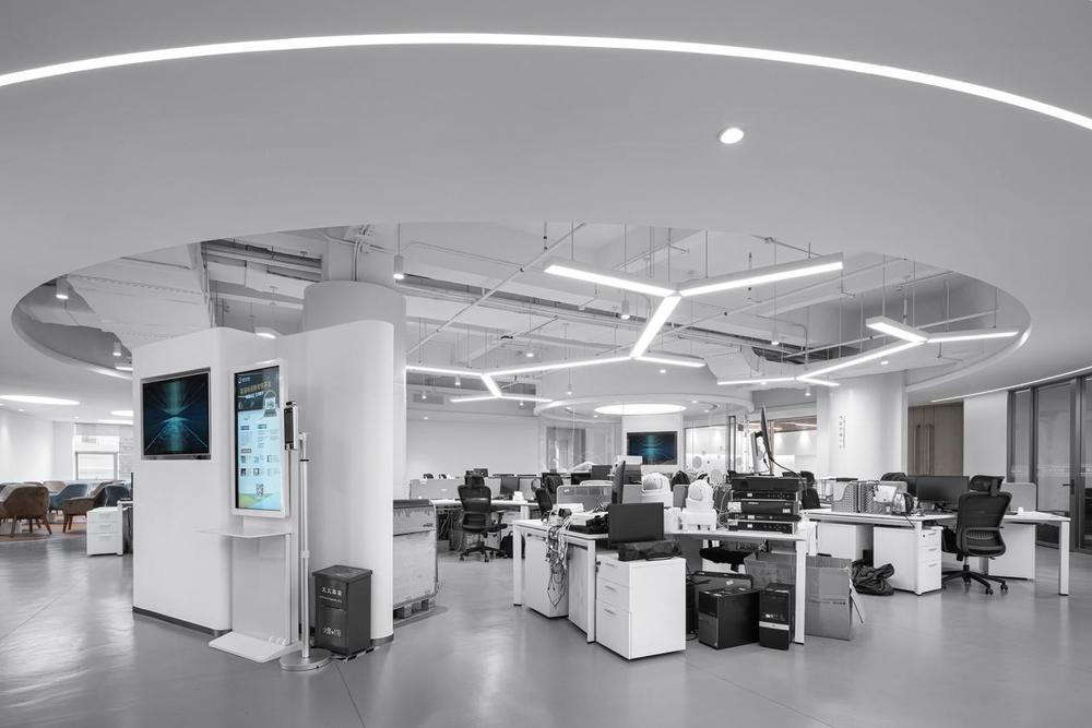 继续深入办公区域,开放式办公区更是让人眼前一亮。这里没有传统意义上的边界框定,空间是相互渗透、自由流动的。开放式办公区完美地延续了海云天勇于创新的企业理念,为员工们提供了一个激发设计灵感的理想场所。办公区的整体基调以简洁明亮的白色为主,营造出一种纯净、清新的工作氛围。办公桌的布置灵活多变,能够适应流动变化的组织形式,无论是团队的集合讨论,还是小组的分工协作,都能在这里找到理想的场地。在这里,工作效率和创造性得到了充分的体现,员工们可以在这个充满活力的空间中尽情发挥自己的才能,实现自己的价值。