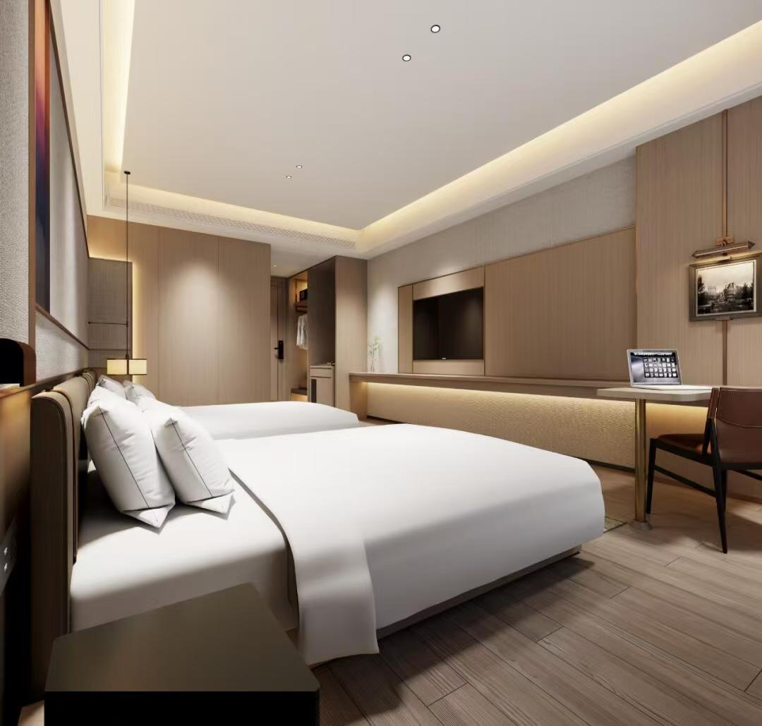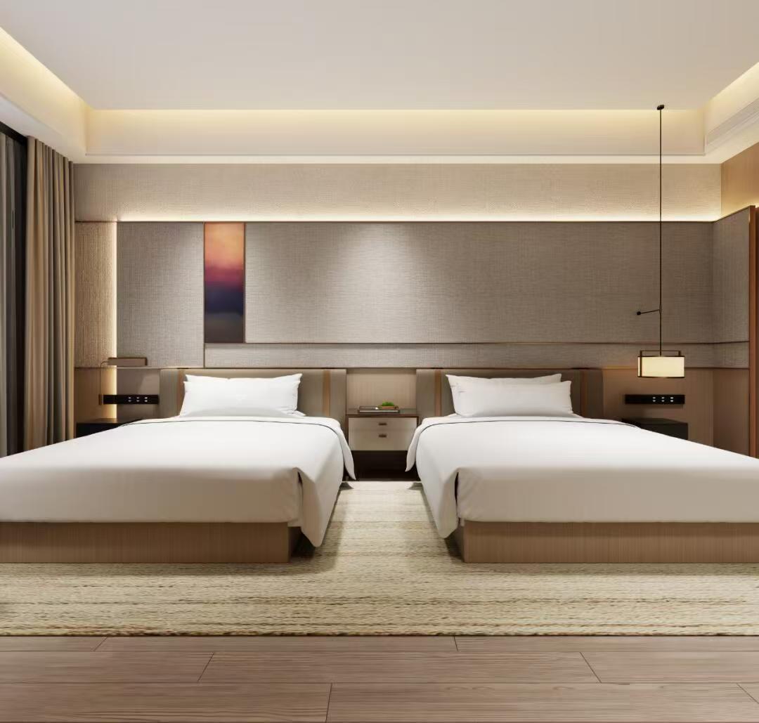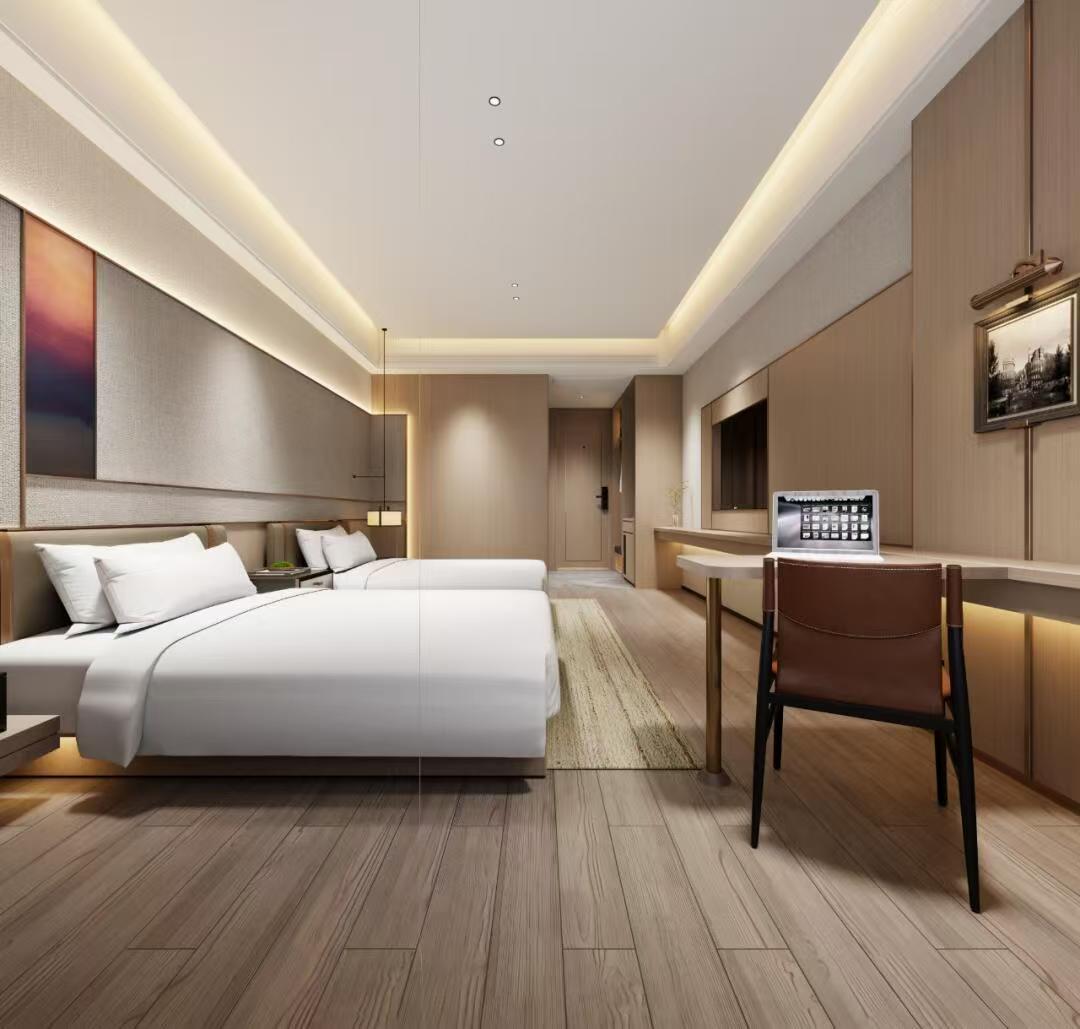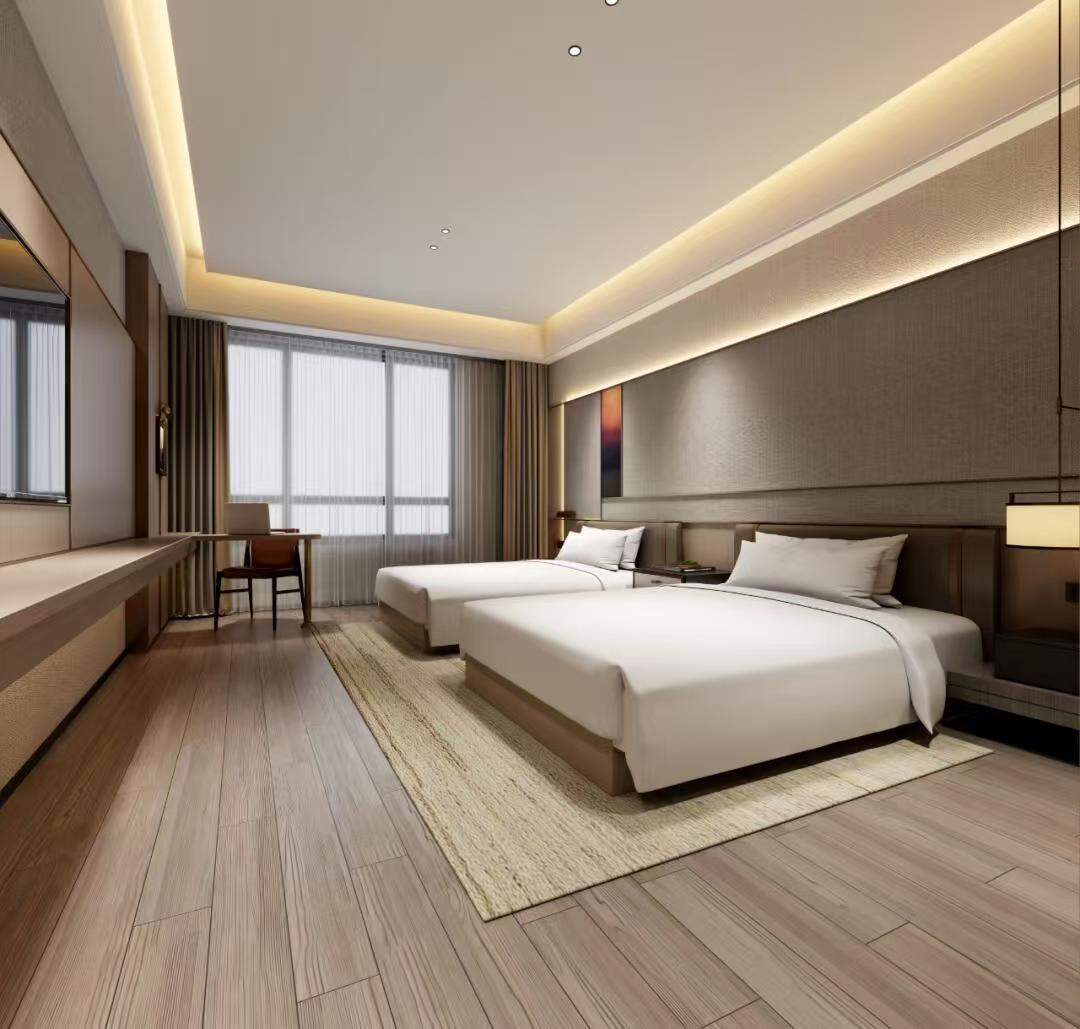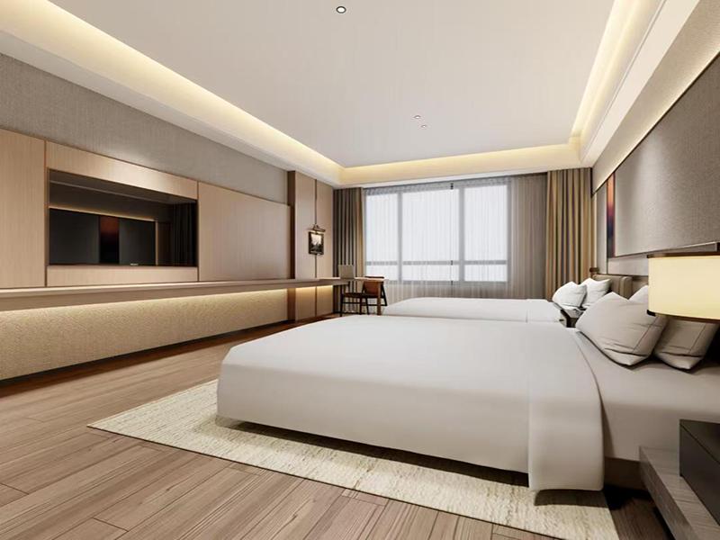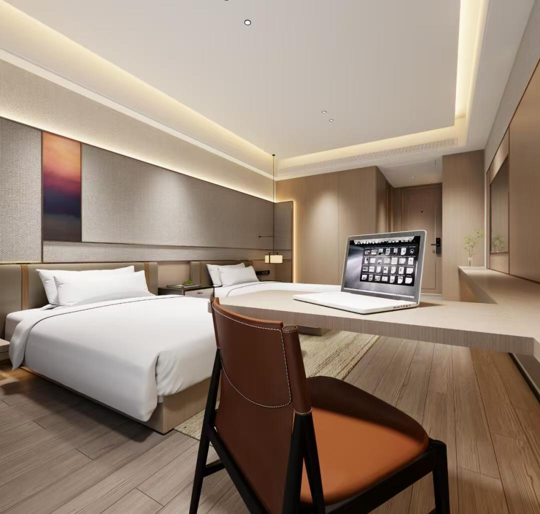 其次,客房是酒店的核心区域,设计注重舒适和简洁。墙面采用白色或淡色调,增加空间的明亮感。家具选择简约而现代的款式,如舒适的床铺和简洁的床头柜,搭配柔和的灯光,营造出温馨的氛围。同时,可以设置一些装饰品,如挂画或花瓶,增加艺术感。