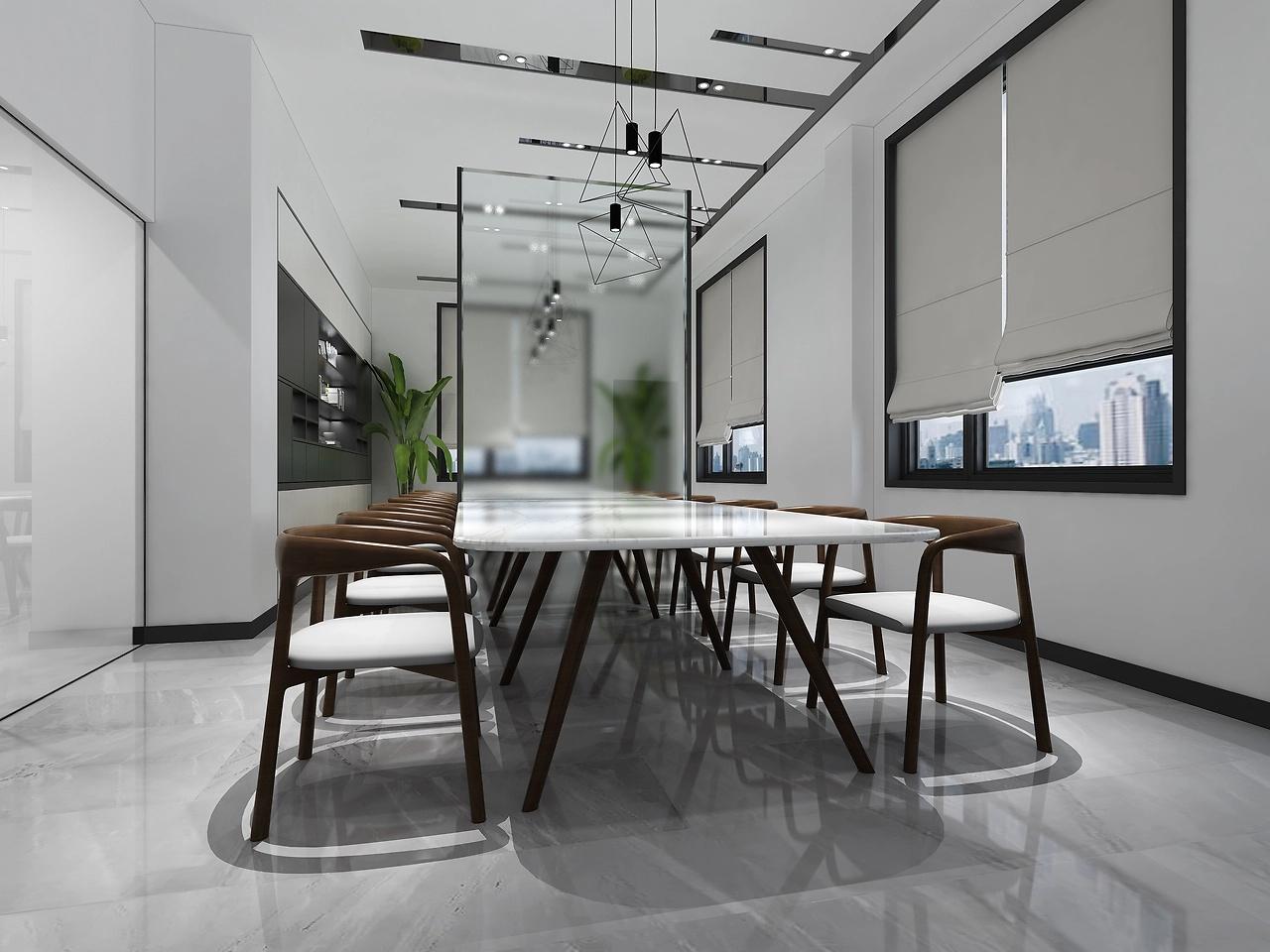 装饰元素的运用是拿手好戏。灯具选择上,线性吊灯、造型别致的吊灯等不仅提供充足照明,更是空间中的视觉焦点,营造出现代时尚氛围。绿植的布置为办公空间注入生机与活力,有效改善空气质量,缓解员工视觉疲劳。而黑白装饰画、陈列架上的精致摆件等,从细节处提升空间艺术格调,彰显企业独特品味与文化内涵。