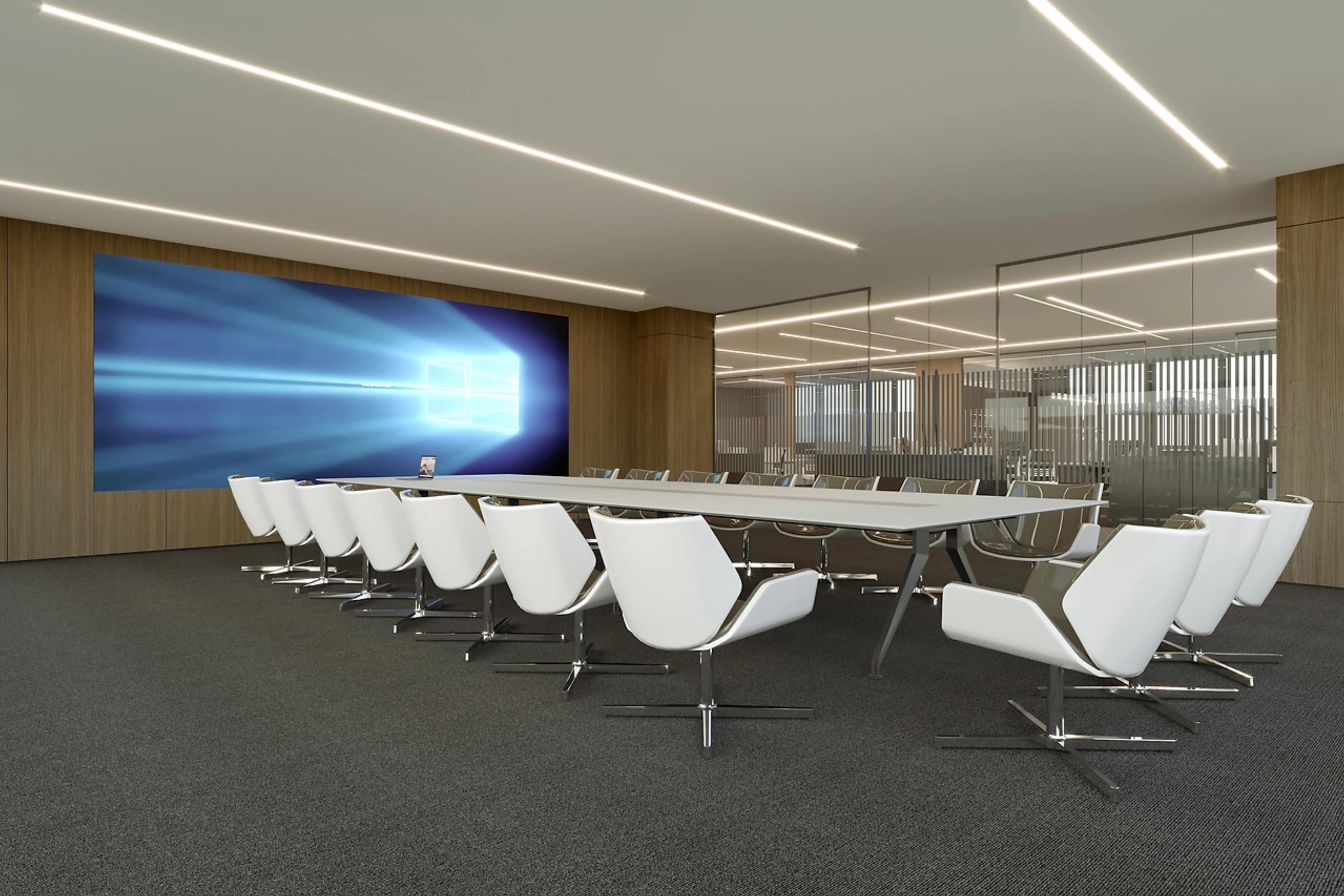 功能分区的规划上,展现出对办公需求的深度理解。办公区中,整齐排列的办公桌与舒适的办公椅,搭配先进的电脑设备,为员工打造了便捷的工作平台。部分区域的隔断设计,充分考虑到员工对私密性的需求,让专注工作成为可能。会议室根据不同规模的会议需求进行规格划分,会议桌、椅的配置兼顾实用性与舒适性,墙面的大屏幕则为团队讨论、汇报展示以及远程会议提供了绝佳的硬件支持。