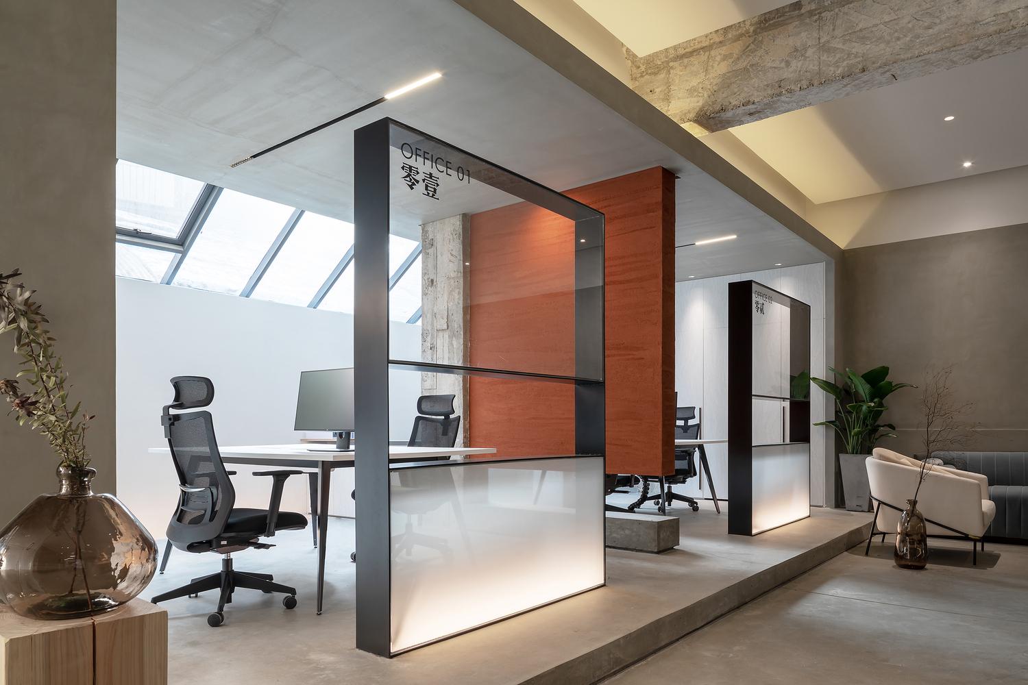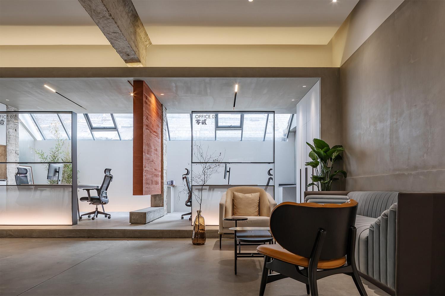 步入其中,首先映入眼帘的是大量水泥材质的运用。裸露的水泥梁柱,带着原始建筑的粗犷质感,彰显着工业风的不羁与随性。这种未经修饰的材质,保留了建筑最本真的模样,为空间奠定了硬朗的基调。而玻璃材质的加入,则如点睛之笔。玻璃隔断划分出不同功能区域,却又不阻碍视线,让空间保持通透开阔,使整个办公室在视觉上更显宽敞。同时,木质元素的融入,像是温暖的拥抱。木桌、木饰面等,以其天然的纹理和温润的色泽,中和了水泥的冷硬,让空间多了几分自然的柔和与温馨。