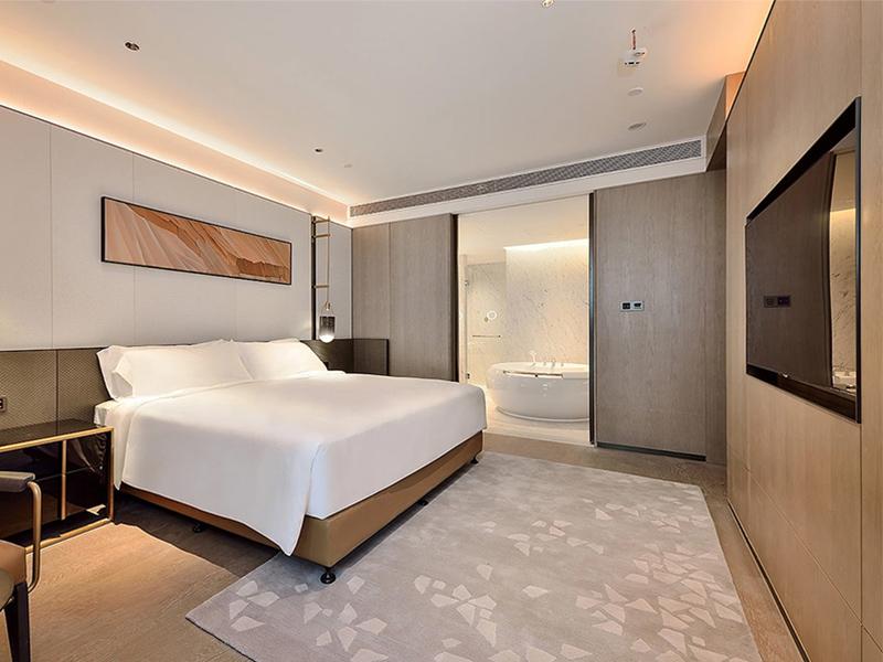 成都市锦江区900平酒店装修项目中,客房作为核心体验空间,其设计充分体现了酒店设计方案对“舒适与品质共生”的追求,也彰显了专业工装设计对空间价值的深度挖掘。本次酒店装修设计以现代简约为基底,搭配浅色调为主的色彩体系,从视觉到体感为住客营造出舒适雅致的居住氛围,成为区域内酒店装修设计的典型范本。
