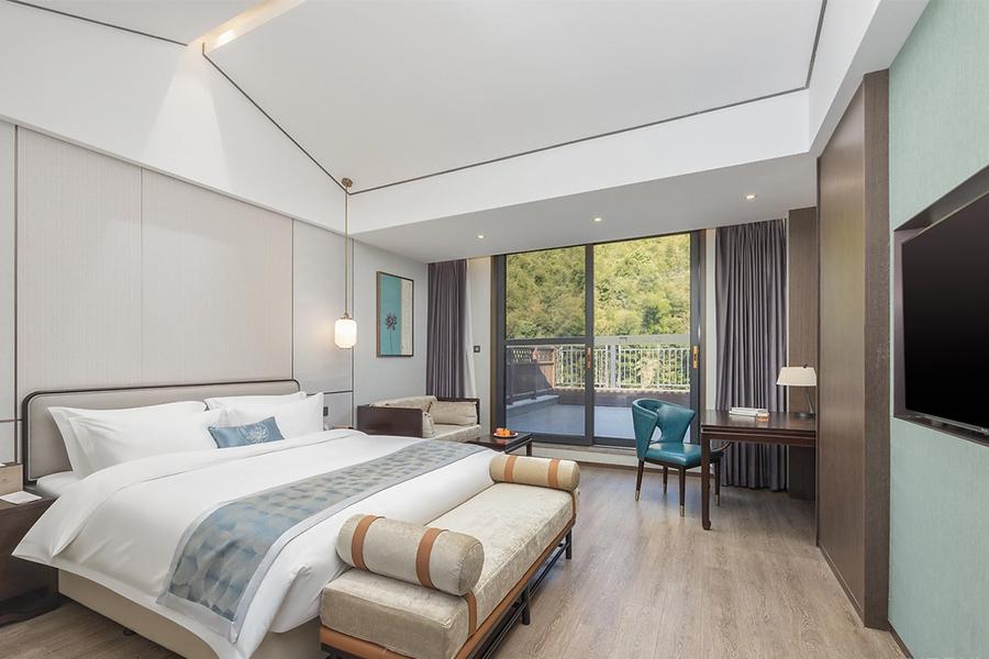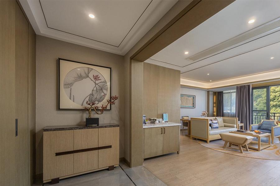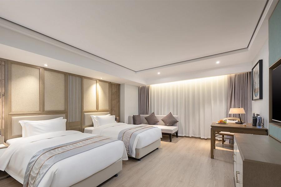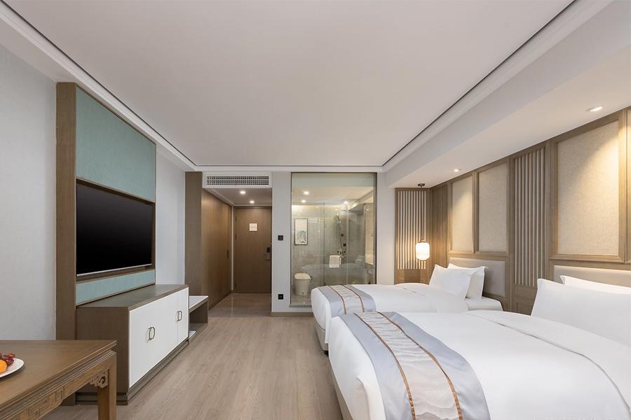 双床房的设计同样用心。两张床对称摆放,既保证了住客各自的私密空间,又通过统一的床品与装饰风格,让整个空间和谐统一。房间内的桌椅、沙发等家具,在材质选择上与整体空间相呼应,木质的纹理与房间的色调相得益彰,传递出自然、舒适的质感。四川壹西格玛建筑工程有限公司在打造这些客房时,充分考虑到了住客的使用需求,从家具的摆放位置到空间的动线设计,都经过了精心的规划,确保住客在房间内活动便捷、舒适。