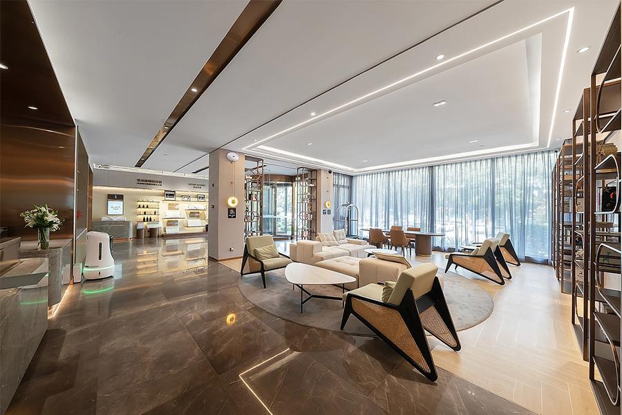 案例简介 | 踏入四川壹西格玛建筑工程有限公司精心打造的巴中市酒店大堂,仿佛置身于现代简约美学的殿堂。摒弃传统的繁复,以简洁线条勾勒空间轮廓。大面积的大理石地面,似澄澈湖面,在灯光轻抚下,反射出通透大气之感,尽显空间的开阔。金属线条如灵动的画笔,细腻地勾勒出精致的轮廓,与温润木质元素相互交织,刚柔并济,碰撞出独特的质感。舒适沙发与造型别致的座椅,随意又有序地摆放,营造出轻松闲适的氛围,轻声呼唤着每一位旅人,放下匆忙,沉浸于这份宁静,感受品质与惬意在空气中弥漫 。 |