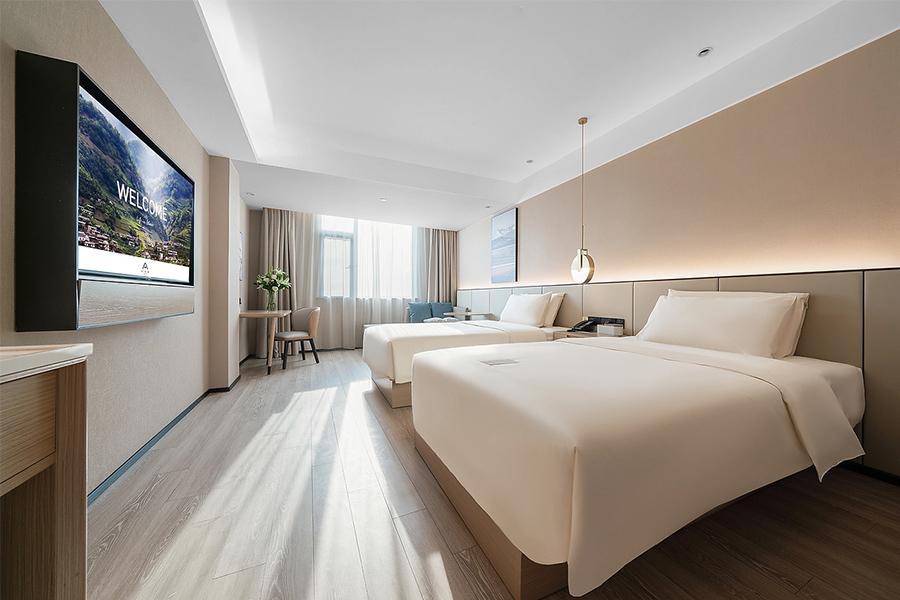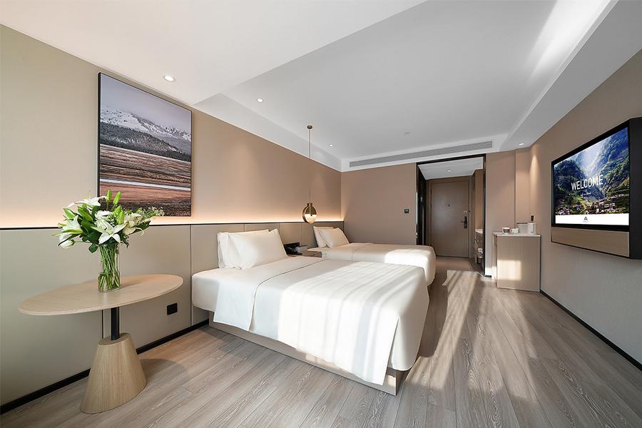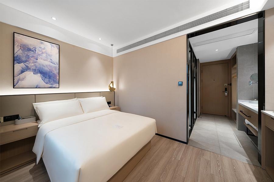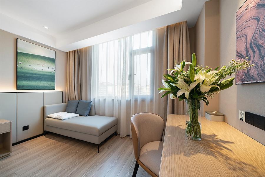 移步至客房区域,更是能感受到四川壹西格玛建筑工程有限公司对居住体验的极致追求。客房整体色调以柔和的米色系为主,搭配木质地板,营造出温馨自然的氛围,仿佛将巴中市的山川灵气与人文底蕴悄然融入其中。床品选用高品质的白色面料,纯净而舒适,让人一躺上去,便能卸下所有的疲惫。床头的装饰画,或展现巴中市的秀丽山水,或呈现抽象的艺术图案,为空间增添了艺术气息,也成为了客房里独特的视觉焦点。