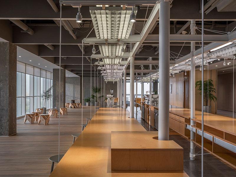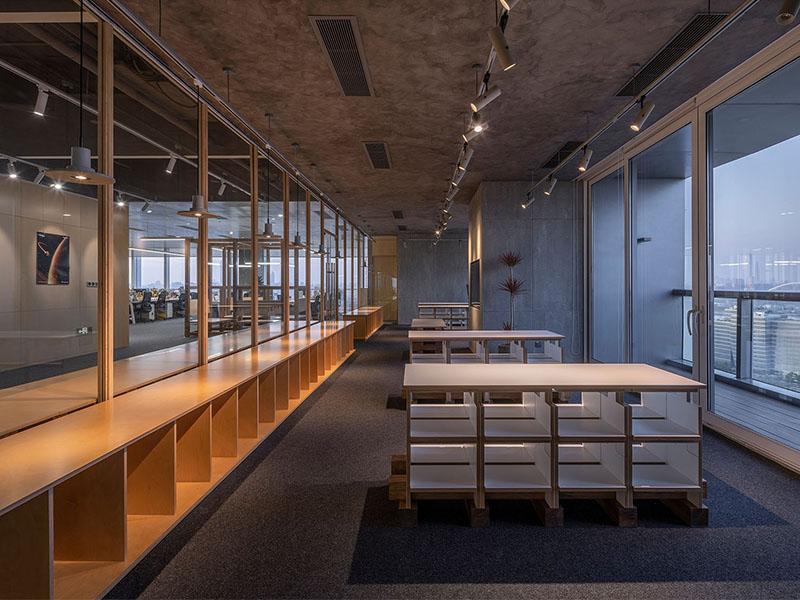 宽敞的开放式区域,摆放着精心挑选的木质桌椅,浅木色的温暖质感与空间整体的现代风格相得益彰。这里是团队交流、头脑风暴的绝佳场所,没有封闭空间的压抑感,大家围坐在一起,思维可以自由驰骋,创意的火花在轻松的氛围中不断迸发;同时,这里也是休闲放松的好去处,午后时光,捧一本书籍,坐在木质桌椅旁,透过落地窗眺望城市,享受片刻的宁静与悠闲。