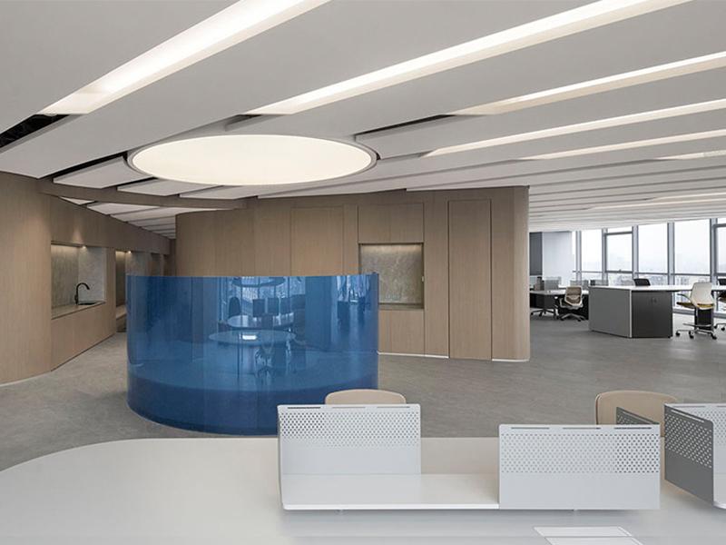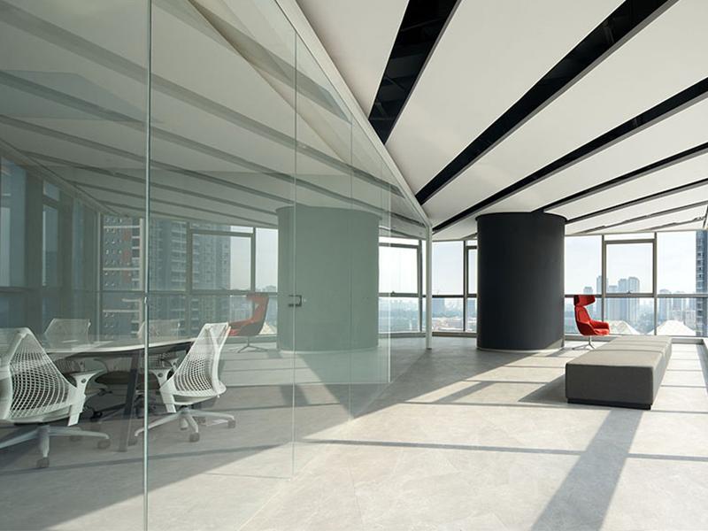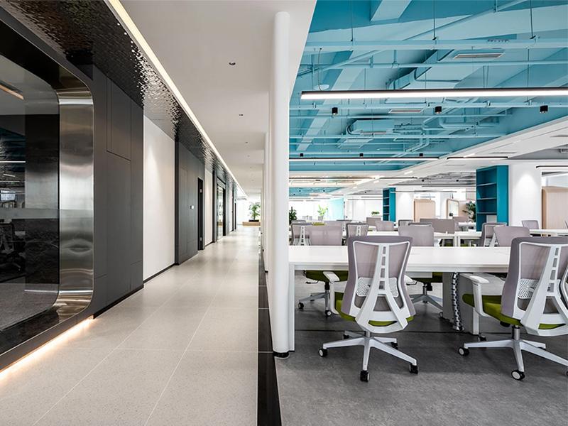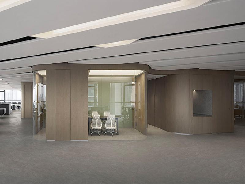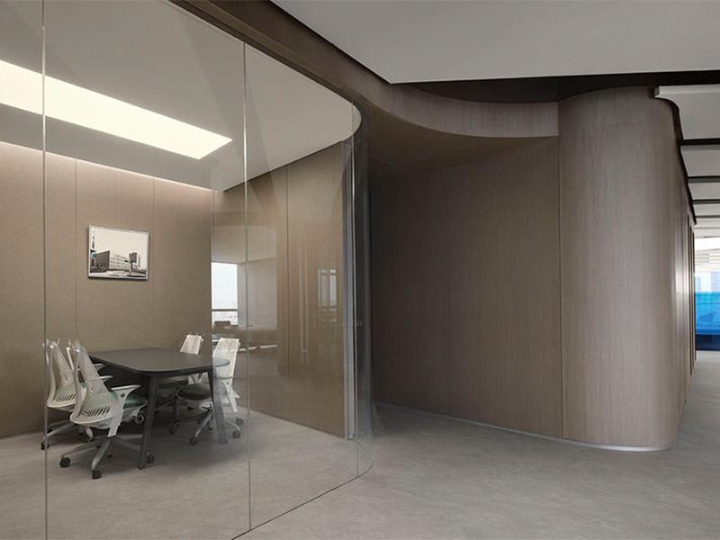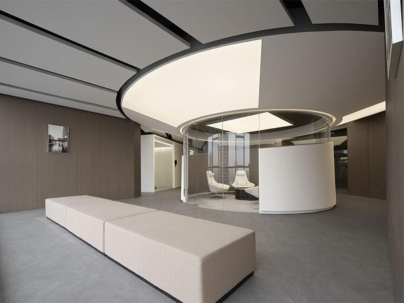 在整体风格塑造上,设计团队大胆且巧妙地运用大量玻璃材质,为空间注入通透灵动的气质。从办公区域的玻璃隔断到会议室的玻璃幕墙,每一处玻璃元素的应用都经过精心考量。透明的玻璃隔断不仅清晰划分出不同的功能区域,还避免了传统墙体带来的封闭感,让整个办公空间视野开阔,各个区域的动态一目了然,既方便员工间的日常沟通,又营造出开放协作的工作氛围。同时,玻璃材质具备出色的透光性,能最大限度地将室外的自然光线引入室内,即使在光线较暗的阴雨天气,办公区域也能保持明亮通透,有效减少了人工照明的依赖,既节能环保,又能让员工在自然光的滋养下保持良好的工作状态,提升工作效率。