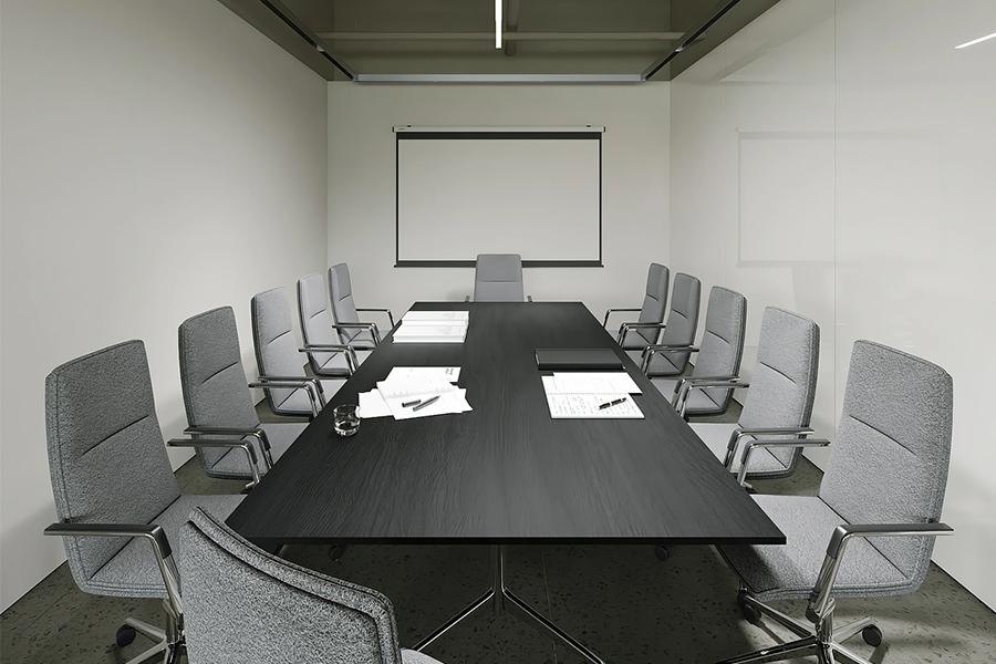 会议室的设计则更显严谨与高效。宽敞的黑色会议桌居于中心,周围环绕着灰色布艺座椅,整体色调沉稳庄重。墙面的投影幕布与简洁的墙面形成视觉聚焦,为各类会议与演示提供了高效的设备支持。桌上摆放的文件与文具,仿佛在无声诉说着即将开启的头脑风暴。四川壹西格玛建筑工程有限公司在打造这一空间时,注重仪式感与实用性的结合,让每一次思想碰撞都能在专业氛围中高效开展。