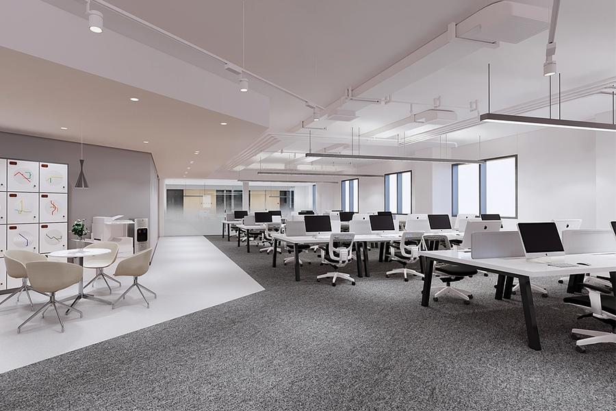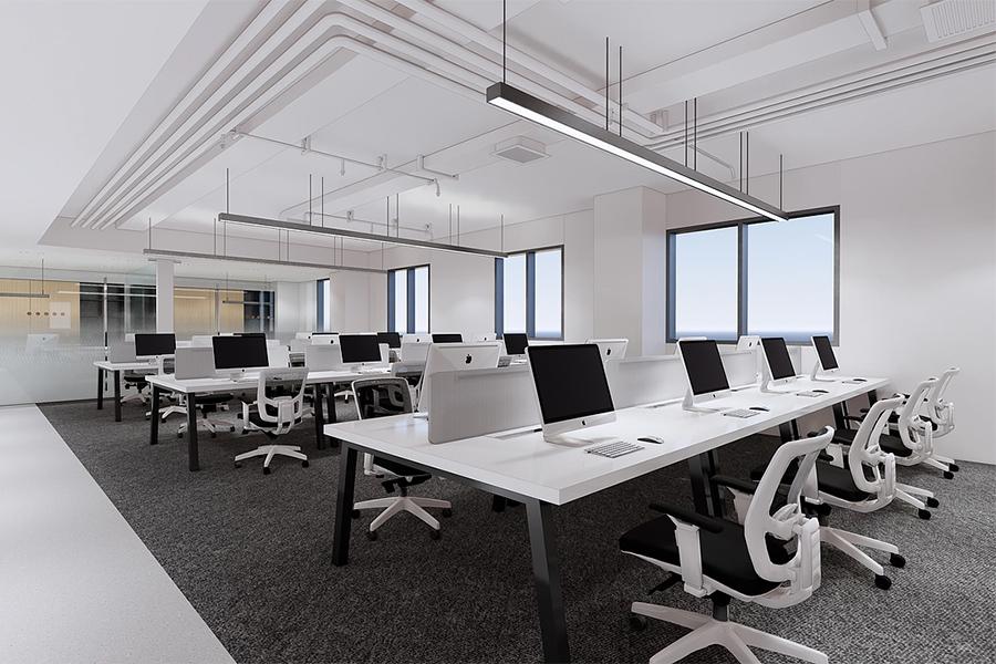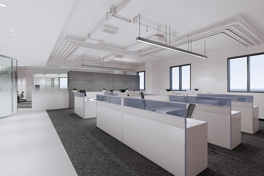 开放办公区是整个空间的核心区域之一,四川壹西格玛在此展现了对空间利用的极致思考。两种不同形式的工位布局,既保证了员工的工作效率,又兼顾了空间的通透感。带有半透明隔断的独立工位,为员工提供了相对私密的工作空间,避免了干扰;而开放式的联合工位,则促进了团队成员之间的交流与协作。地面的灰色地毯不仅起到了降噪的作用,还与白色的地胶形成了鲜明的对比,在视觉上划分了不同的功能区域。悬挂的长条形灯具与裸露的管线设计,为空间增添了一丝工业风的干练,与成都这座城市的创新活力相得益彰。