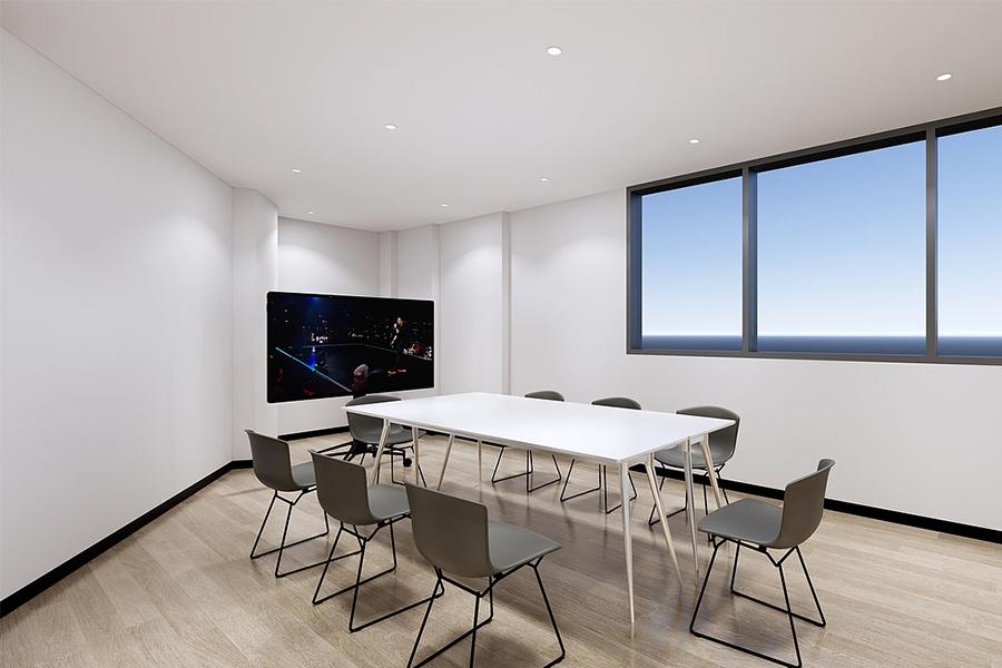 会议区的设计则充分考虑了现代办公的需求。简约的白色会议桌搭配灰色的座椅,超大的落地窗引入了充足的自然光线,让整个空间显得明亮、开阔。墙面的显示屏满足了多媒体会议的需求,让各种形式的会议都能顺利开展。在这里,团队可以进行头脑风暴、方案研讨,高效地推动工作的进展。