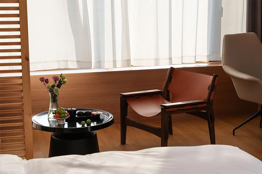 甚至在软装的搭配上,团队都极尽巧思。茶几上的鲜果、花瓶里的应季花卉、沙发上一本关于成都人文的杂志…… 这些看似随意的布置,实则是精心策划的 “生活剧场”,让客人在入住的每一刻,都能感受到成都的烟火气与设计的精致感。