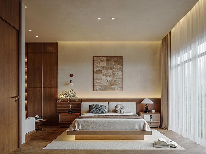 细节处的东方哲思,让壹西格玛的设计更具温度。餐饮区的几何开窗形成艺术化光影,极简吊灯与陶罐呼应着侘寂美学的 “不完美之美”;卧室里的东方纹样挂画、投影设备,在禅意基底上注入现代活力。从高端民宿的双栖休憩空间,到私人住宅的慢生活场域,壹西格玛始终在平衡:平衡材质的粗粝与精致,平衡空间的功能与精神,最终让每一处设计都成为 “回归自然、安顿内心” 的生活容器。