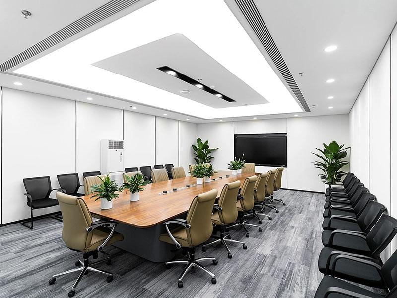 独立办公区与会议室延续了整体的简约基调,玻璃隔断搭配磨砂处理,在保证空间通透感的同时,有效保护了隐私。小型独立办公区静谧舒适,大型会议室则以长桌、舒适座椅与智能显示屏为核心配置,满足会议、培训等多元需求。墙面以纯白、浅灰为主,搭配温润的木质元素,中和了冷硬的现代感,增添了空间的温馨度;嵌入式照明与重点照明相结合的设计,避免了单一光源带来的压抑感,让每个角落都光线适宜。