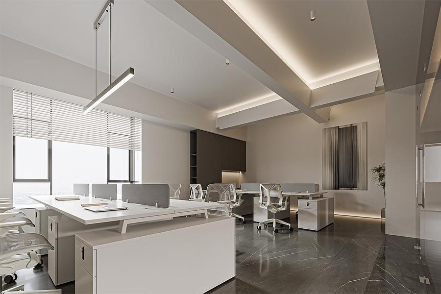 布局上打破传统割裂感,实现功能区域有机融合。开放办公区采用模块化设计,半高隔断兼顾工位独立与团队沟通;人体工学椅与可调节办公桌的配置呵护员工健康。紧邻的休闲洽谈区以浅米色沙发、落地窗构建温馨氛围,既是员工休憩区,也是小型头脑风暴或客户洽谈区,实现“一处空间、多重用途”。