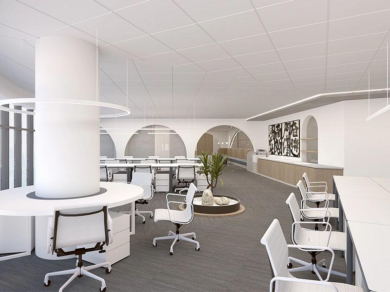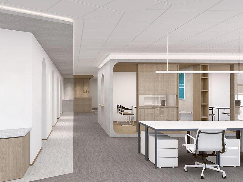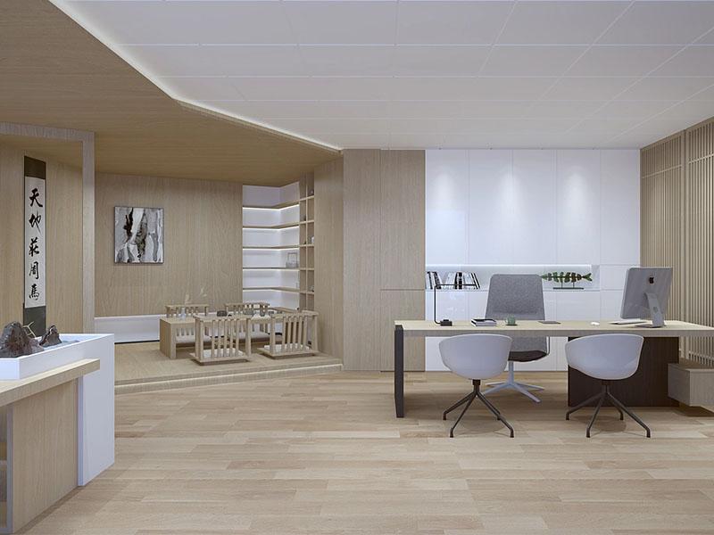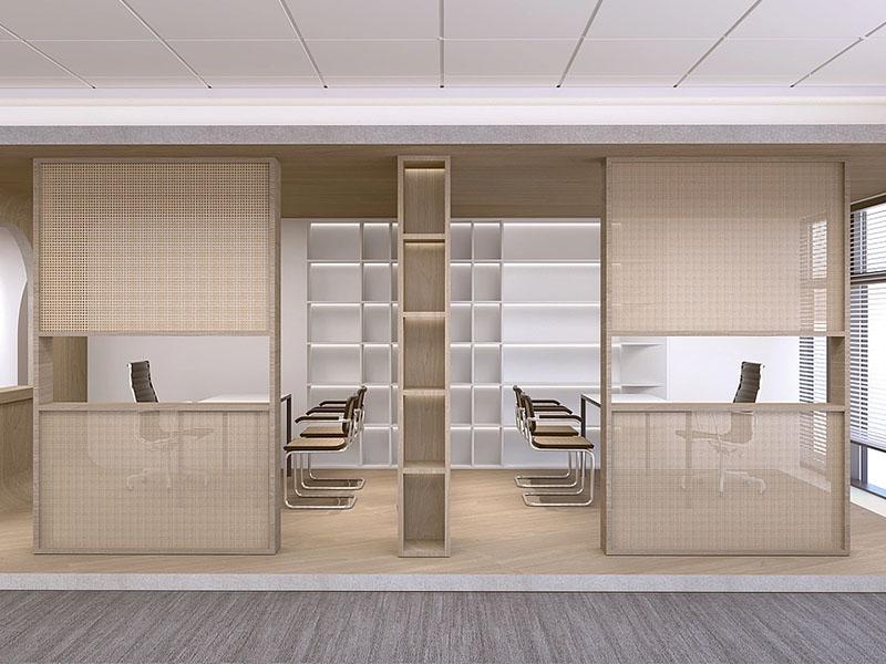 书法卷轴悬于格栅隔断旁,笔墨间的舒展意趣与木质格栅的光影交错相融,既保留了传统空间的 “漏景” 韵味,又用现代材质的轻盈感平衡了中式元素的厚重。工位以矮屏风划分出 “小聚落”,明式线条的茶桌嵌于开放区,开会时围坐于此,方案讨论都多了几分 “文房对谈” 的松弛;独立办公室里,水墨纹理的隔断与简约办公家具相衬,科技设备隐于留白处,“效率” 与 “禅意” 在此达成默契,敲键盘的节奏都跟着空间的舒展慢了半拍。