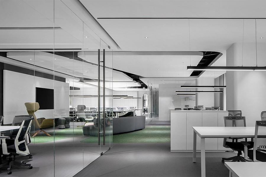 穿过接待区域,开放办公区以 “无界协作” 为设计核心,铺展开开阔通透的空间格局。四川壹西格玛充分利用成都成华区世永大厦办公室的层高优势,采用全玻璃隔断划分功能区域,既保障了空间的采光通透,让自然光毫无阻碍地铺满每个工位,又实现了功能区的软性区隔,避免了传统办公空间的闭塞与割裂。办公区域内,人体工学设计的办公椅与简洁实用的工位桌完美适配,桌面高度与抽屉布局经过反复调试,契合日常办公的操作习惯,有效减轻长时间办公带来的身体疲劳。天花板上,嵌入式筒灯与线性灯带组合形成均匀柔和的照明系统,替代了传统荧光灯的刺眼光线,为长时间专注工作提供了舒适的视觉环境。在办公区的角落,四川壹西格玛特意植入微型自然景观,几株绿植与苔藓、置石相映成趣,既成为空间的视觉焦点,又为紧绷的工作节奏注入自然气息,让员工在抬眼间便能获得片刻舒缓。