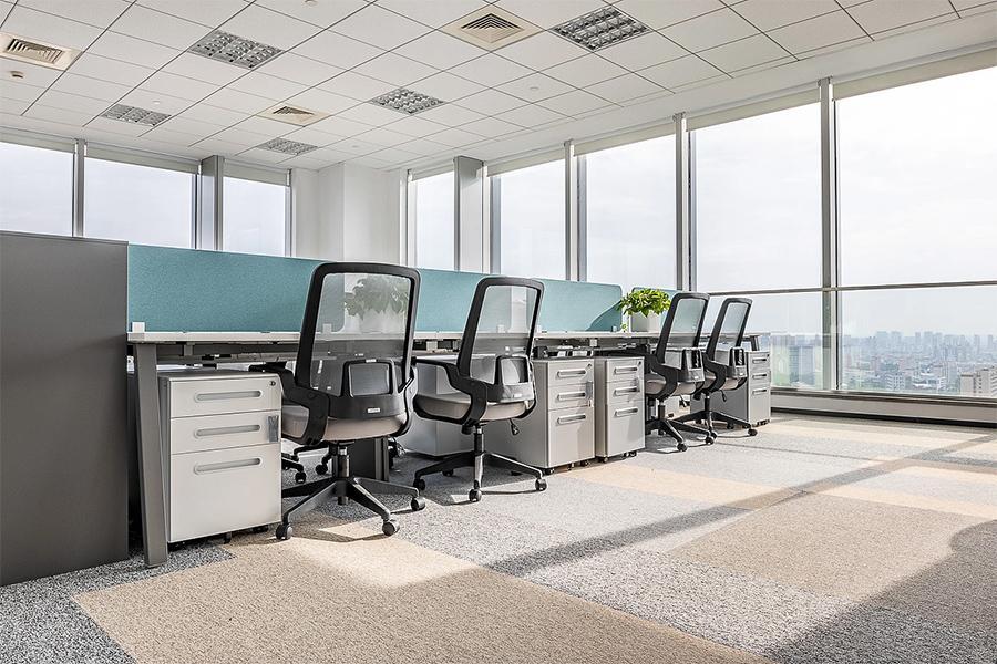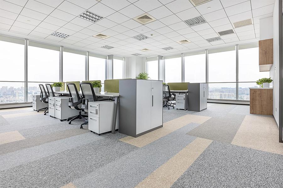 推开这间双流区办公室的门,大面积的全景落地窗率先攫取视线 —— 澄澈的玻璃将双流的城市天际线妥帖纳入室内,自然光循着晨间日光倾洒而入,让开阔的办公区始终浸在柔和明亮的氛围里。这里没有冗杂的装饰,浅灰与米白交织的地毯铺就舒适基底,简约的吊顶搭配嵌入式照明,既保障了充足光线,又让空间更显利落通透;而错落分布的绿植,恰好为理性的办公场景晕染出自然生机,让职场的节奏多了几分松弛感。