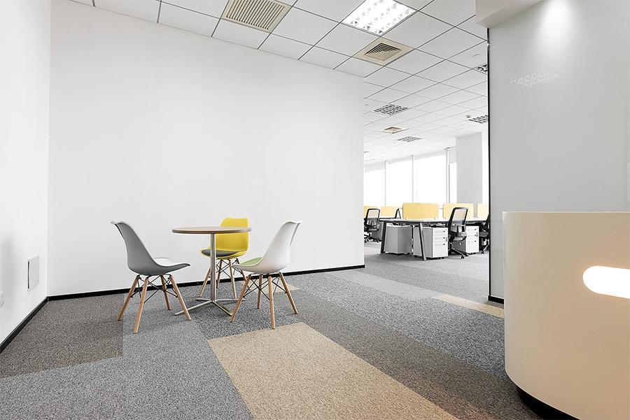 开放式工位区以人性化尺度规划,浅绿、明黄的隔断既保留了办公的私密性,又不阻隔团队间的协作气场;每一处工位旁都配备了独立储物柜,兼顾收纳便捷与空间整洁,桌角的绿植点缀则让专注工作的时刻多了一抹鲜活 —— 这正是四川壹西格玛的设计巧思:让功能与美学在细节里共生。玻璃隔断围合的会议室是另一处亮点,通透材质既保障了沟通的私密性,又让空间不显逼仄,抬眼便能瞥见双流的城市风貌,悄然消解了会议的沉闷;角落的休闲区则是温柔的 “情绪缓冲带”,简约圆桌搭配轻盈座椅,成为员工短暂休憩、灵感碰撞的理想角落,让办公不再是刻板的效率命题。