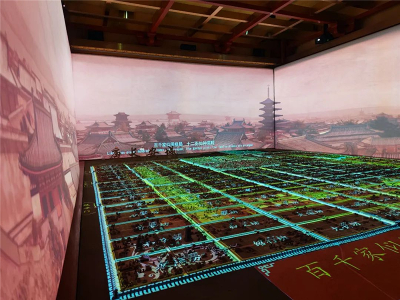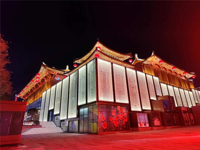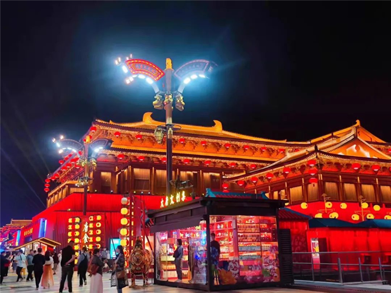 大唐不夜城以九组雕塑群与现代化的水景系统、灯光系统、立体交通系统相结合,立体展现大唐帝国在宗教、文学、艺术、科技等领域的地位并彰显大国气象,多维再现盛世大唐风范,不仅是唐文化的现代演绎,且是兼有现代文化,世界各国文化互通、交流的多样化集合形态。