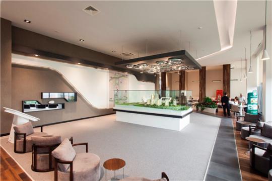空间的合理安排。在售楼部装修设计中,售楼部中的各个功能区应当能够互相连接,这样的空间链接才能让顾客感到楼盘的智能化。同时空间内可安装些动态的元素,以起到动态与静态的交融,整体气氛更对销售人员与顾客的交流提供良好的环境。