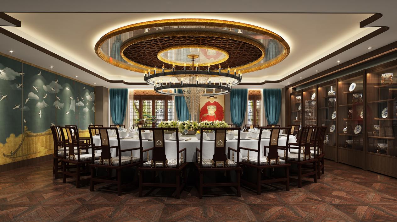 由于博物馆所在建筑条件的限制(建筑净层高只有2650mm),为了形成公共空间的宽敞气势,大空间吊顶均采用了镜面不锈钢,局部采用古建屋顶的结构构件装饰,使空间敞亮又不失细节。展示大厅是一个多功能的空间(饮茶、用餐、拍卖等商业活动),没有做过多的硬性隔断,局部用垂帘分隔,也更增加了休闲轻松的气氛。所有的小件展品均布在观赏动线紧邻的墙柜及博古柜中。包房的设计则尽可能的采用岳先生收藏的门、窗扇、挂落、屏风、木雕等,加上古家具,除了方便卫生外,尽可能还原旧时的生活场景。